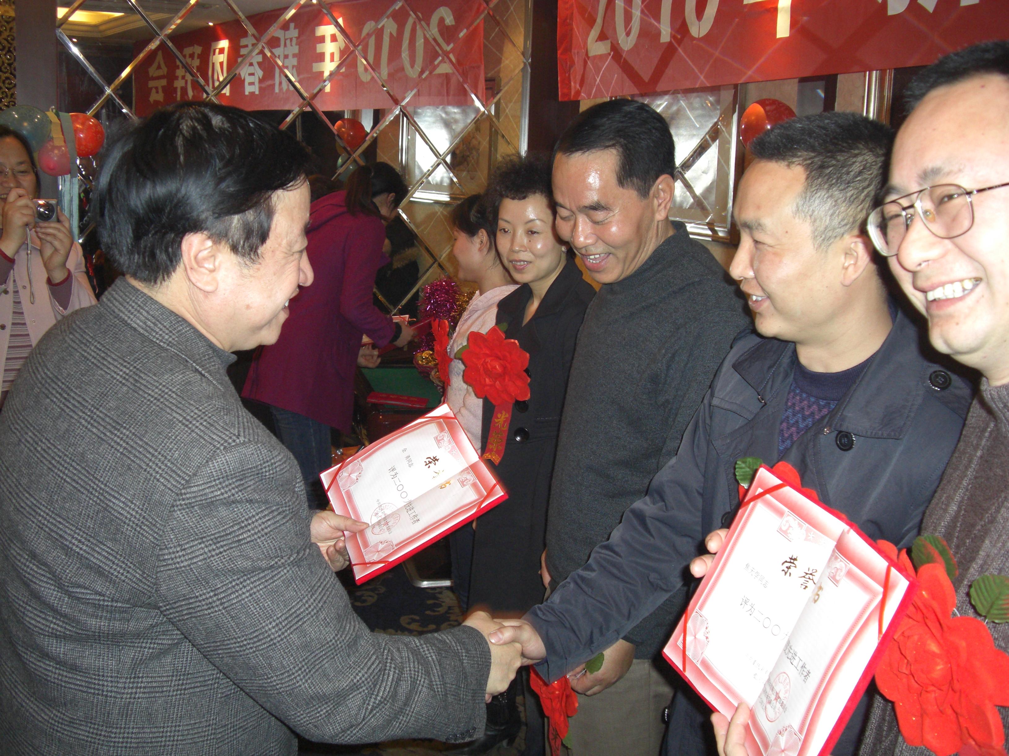 團(tuán)拜會(huì)對(duì)2009年評(píng)選出的先進(jìn)工作者進(jìn)行了表彰。屈總和林副總分別向先進(jìn)生產(chǎn)者頒發(fā)了證書和獎(jiǎng)金。