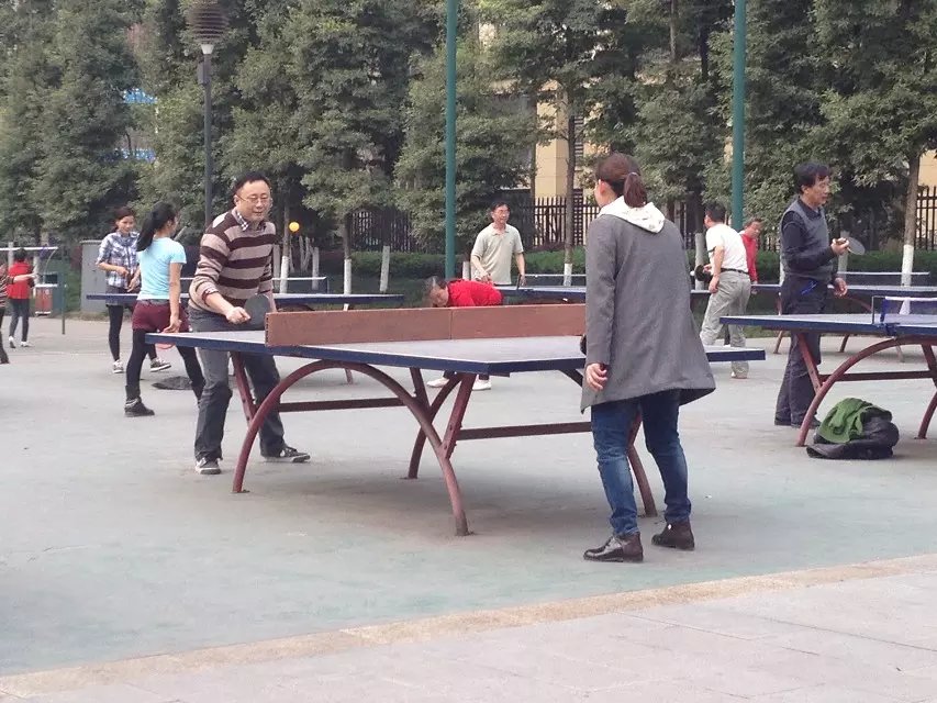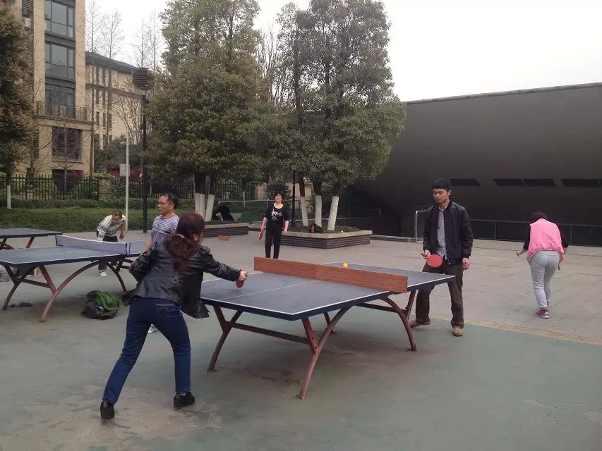 到達龍頭寺公園后,大家有的在乒乓球臺上你推我擋;有的手持羽毛球拍揮汗如雨;有的坐在一邊為大家加油助威。呈現(xiàn)一股生龍活虎的氣象。