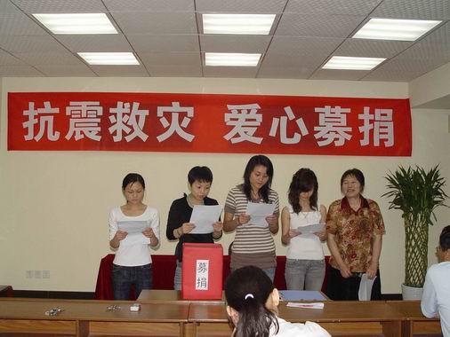 同胞有難,我們能做什么?5月15日,公司黨支部發(fā)出“心系災(zāi)區(qū),盡獻(xiàn)一片愛心”的募捐倡議書,呼吁公司員工伸援手,獻(xiàn)愛心,向?yàn)?zāi)區(qū)人民捐款,齊心協(xié)力共度難關(guān)。次日,公司黨支部組織召開了“抗震救災(zāi)獻(xiàn)愛心,齊心協(xié)力度難關(guān)”的募捐大會(huì)。會(huì)上,黨支部書記林云同志號(hào)召大家要發(fā)揚(yáng)一方有難八方支援的精神,以實(shí)際行動(dòng)抗災(zāi)救災(zāi),為災(zāi)區(qū)人民盡一份社會(huì)責(zé)任和愛心。公司總經(jīng)理屈慶琭同志也發(fā)表了動(dòng)員講話,他說,雖然我們的力量微不足道,但為人民服務(wù)及為社會(huì)盡責(zé)是我們企業(yè)文化的重要內(nèi)涵。我們公司是負(fù)責(zé)任的公司,我們的心永遠(yuǎn)和災(zāi)區(qū)人民在一起。會(huì)上,員工們還進(jìn)行了抗震救災(zāi)詩歌朗誦表演,表達(dá)了心系災(zāi)區(qū)的真摯情感。